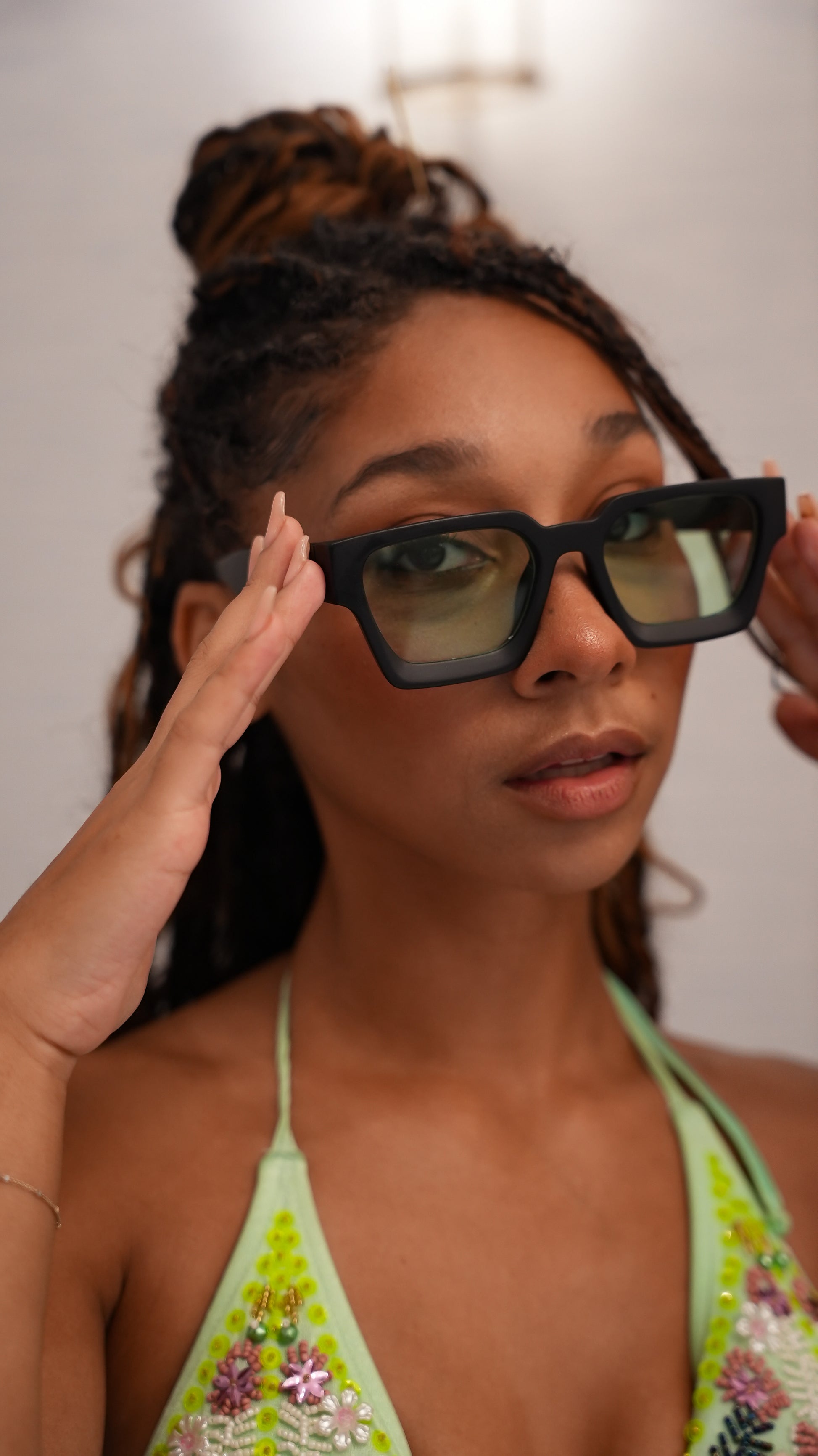 Matte Mint features soft green-tinted lenses in our iconic matte black frame. This pair is made for the mindful—those who move through their day with intention, style, and just the right touch of mystery.