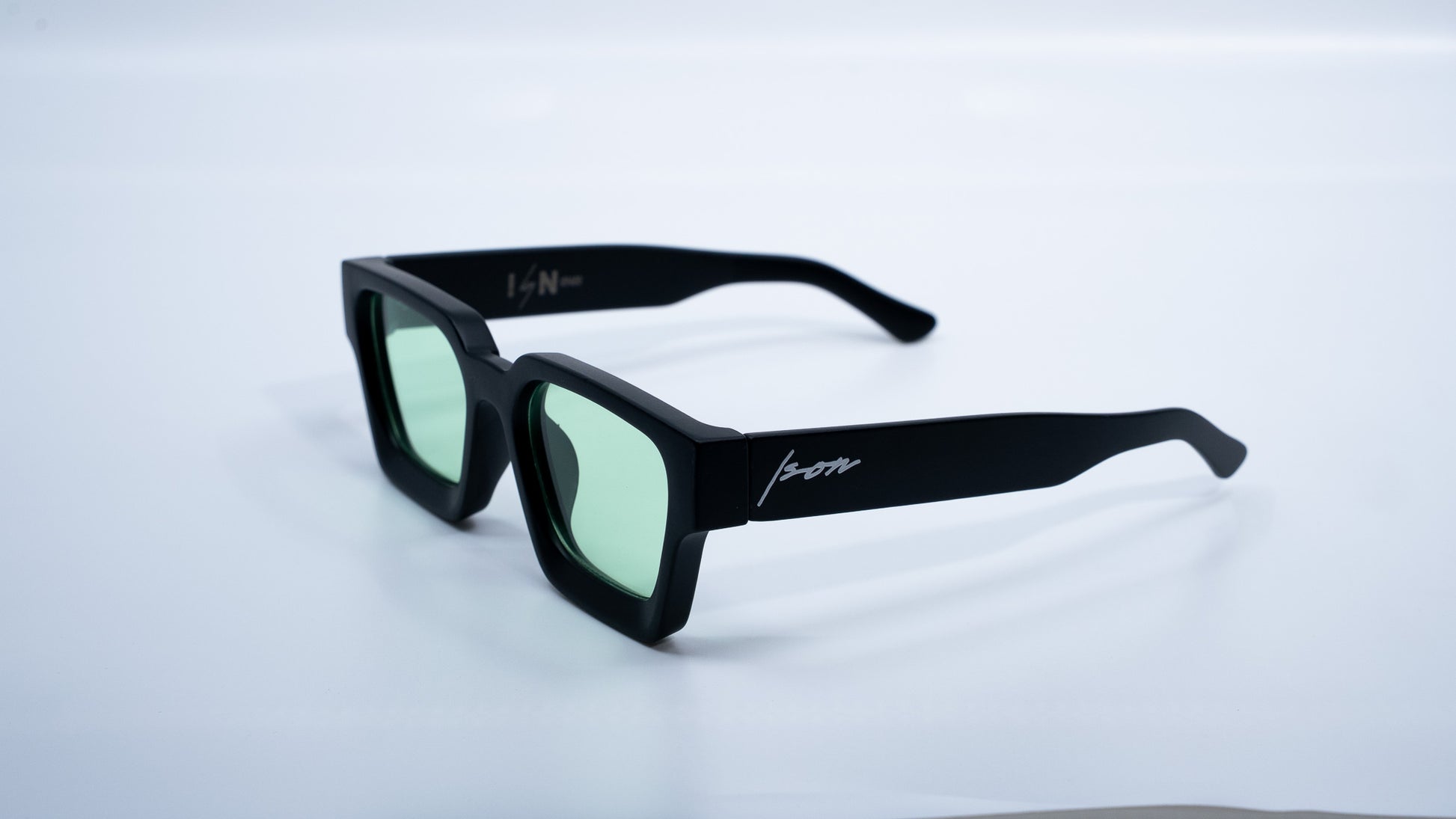 • Signature ISON square silhouette with matte black finish